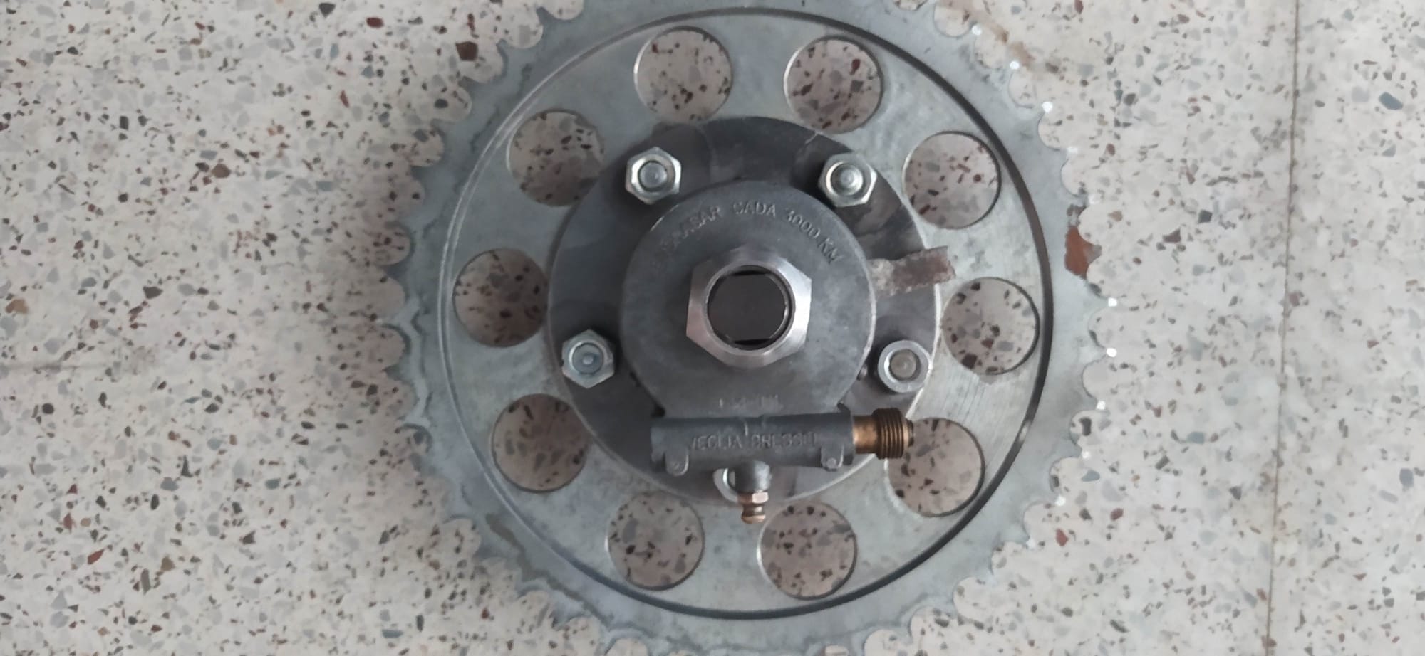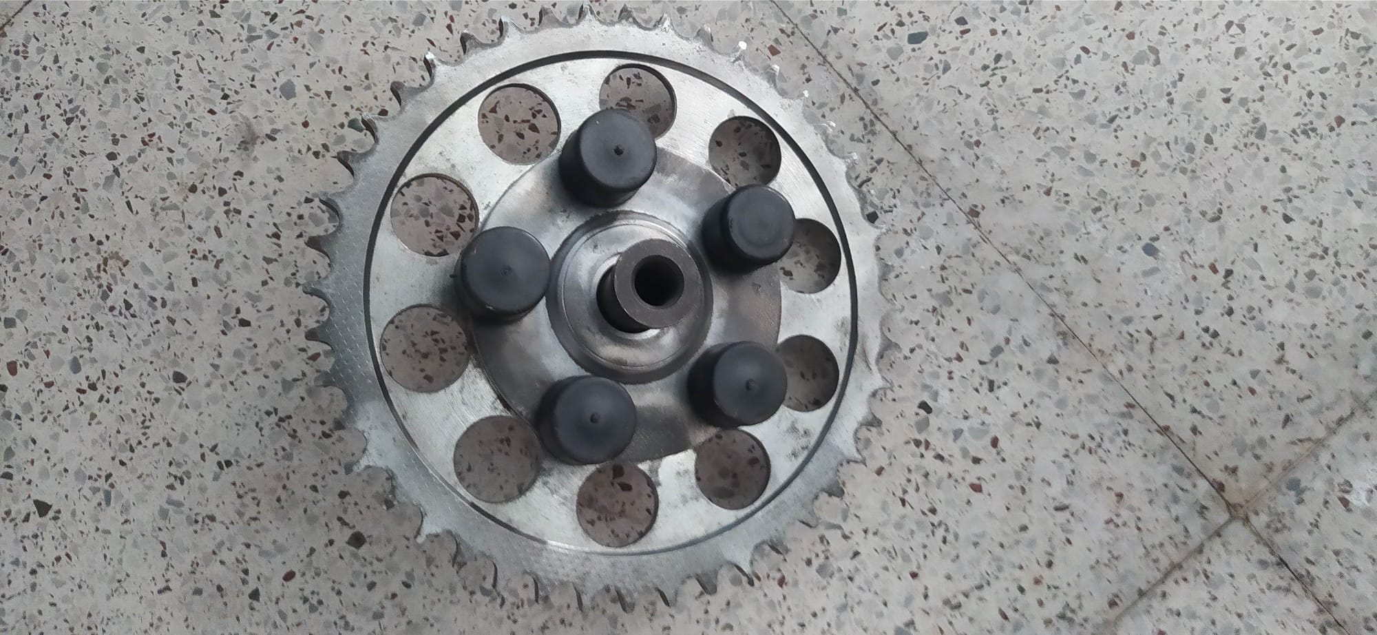 Descripción. Conjunto Corona, Eje y tuerca, Renvio, tochos y gomas, rodamiento todo el conjunto